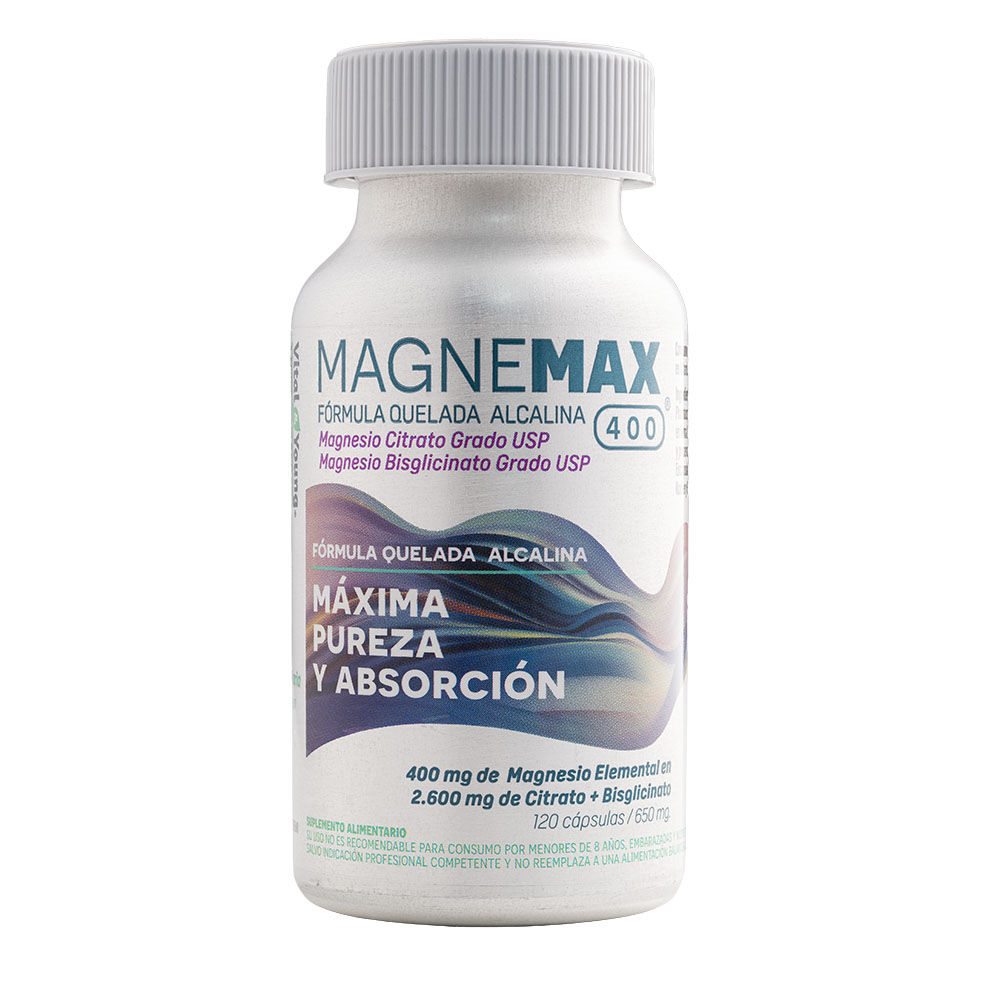 MAGNEMAX 400® es una fórmula capaz de entregar 400 mg diarios de Magnesio Elemental a través de una combinación de 2.600 mg de Citrato de Magnesio Grado USP y Bisglicinato de Magnesio Grado USP. Siendo su Citrato uno de Absorción Rápida y su Bisglicinato uno de Absorción Prolongada, con el objetivo de Mantener Constante la entrega de Magnesio Elemental al organismo. Se trata de una Fórmula Quelada (el
